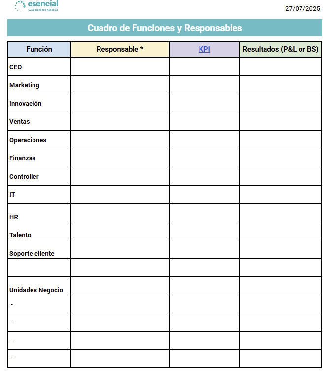 Plantilla que sustituye al típico organigrama para aclarar quién hace qué en el equipo directivo y transmitir claridad a la organización.