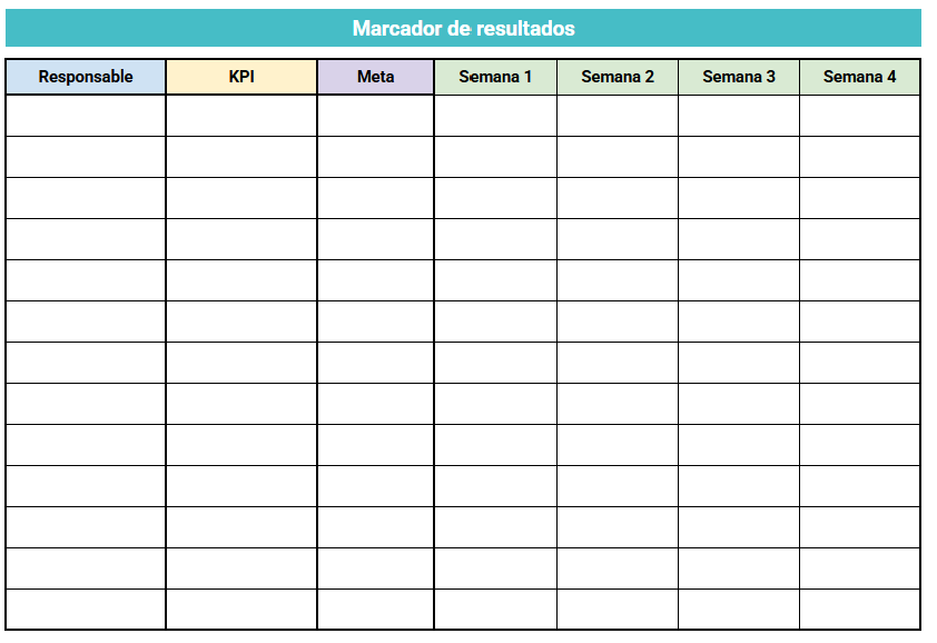 Un tablero sencillo donde hacer seguimiento semanal a las principales métricas del negocio, con resopnsables definidos.