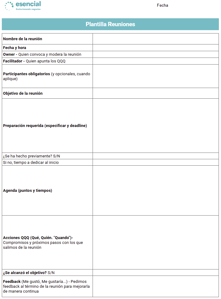 Las reuniones tienen tres claves: prepararlas bien, hacerlas interesantes y salir de ellas con decisiones específicas. Esta plantilla te ayuda a lo último